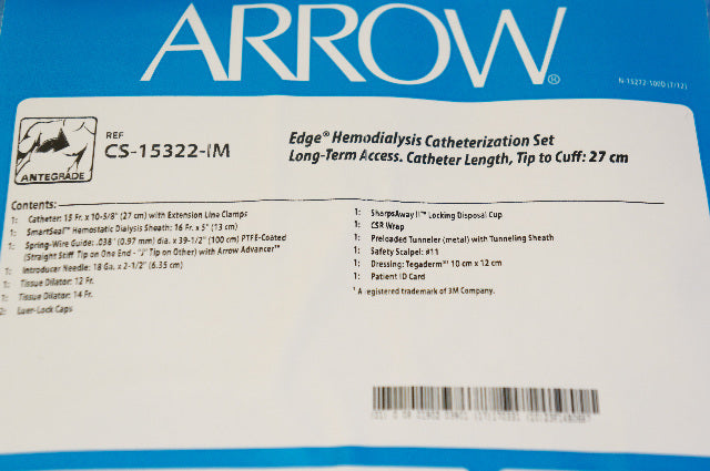 - Arrow CS-15322-IM Edge Hemodialysis Catheterization Set Long-Term Access 27cm(x)