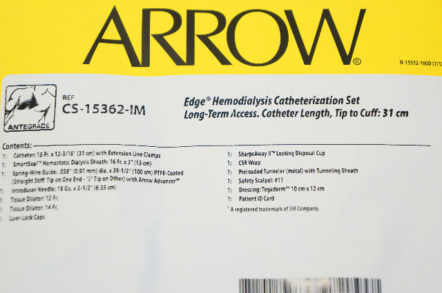 - Arrow CS-15362-IM Edge Hemodialysis Catheterization Set Long-Term Access 31cm(x)