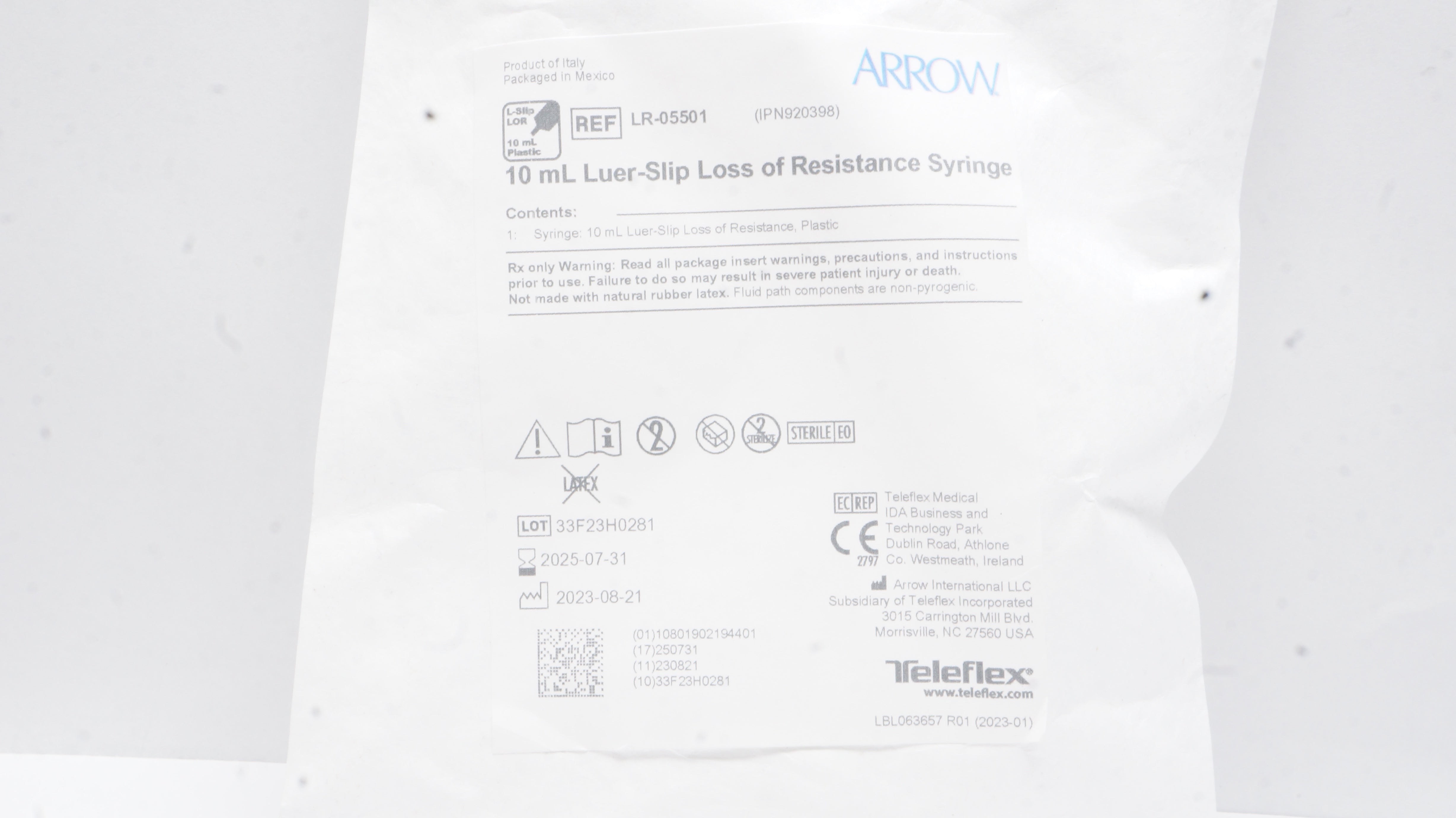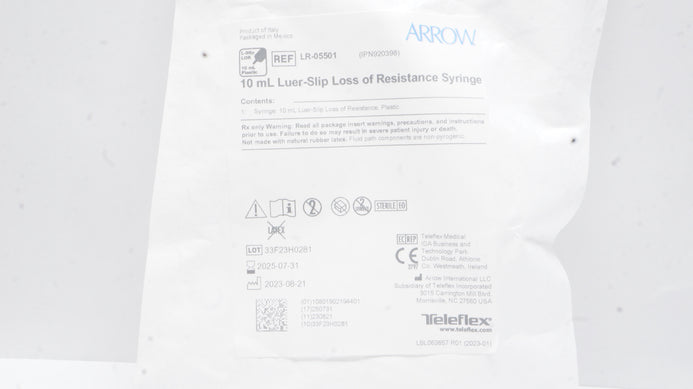 - Arrow LR-05501 10mL Luer-Slip Loss of Resistance Syringe