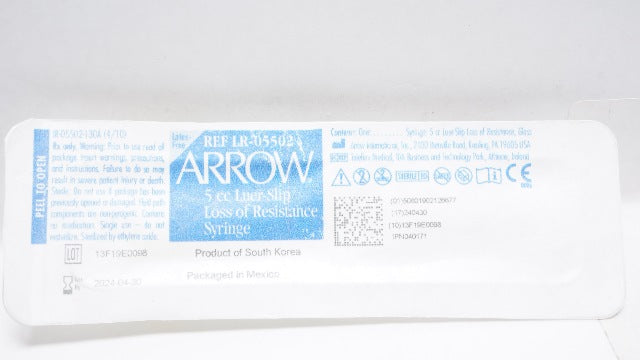 - Arrow LR-05502 Luer-Slip Loss of Resistance Syringe 5cc (x)
