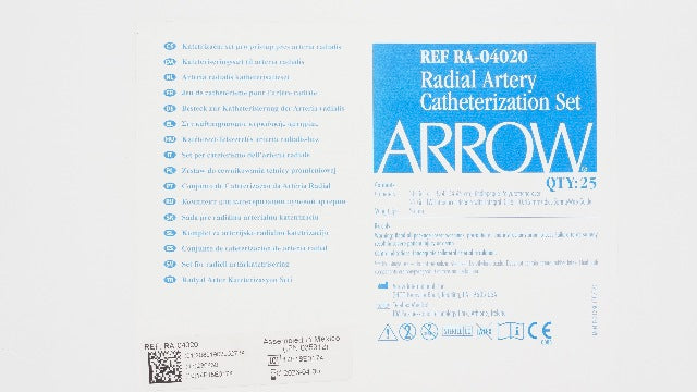 - Arrow RA-04020 Radial Artery Cath. Set 20Ga x 1-3/4inch (x) - Box of 25