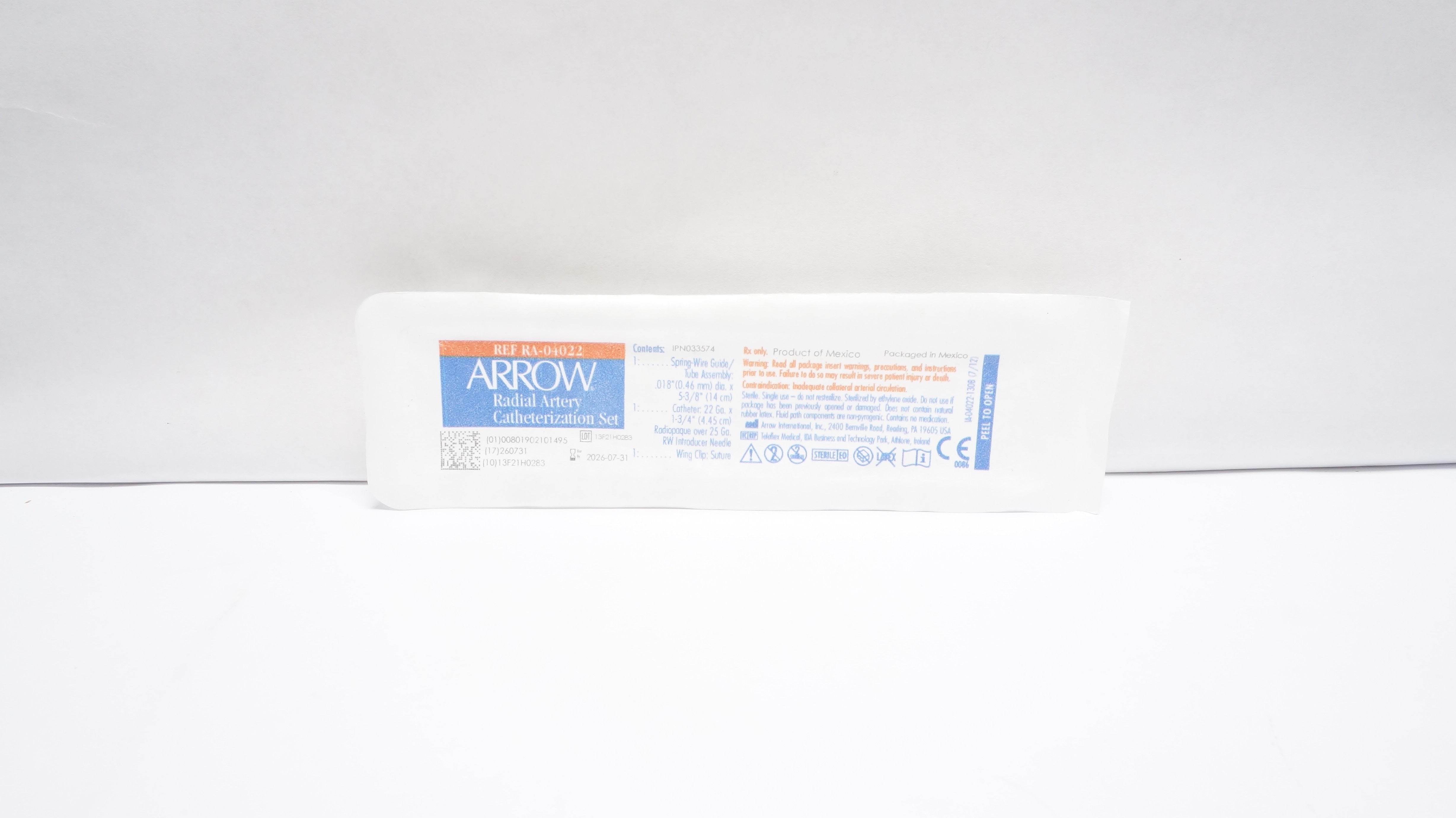 - Arrow RA-04022 Radial Artery Catheterization Set 22Ga x 1 3/4 inch
