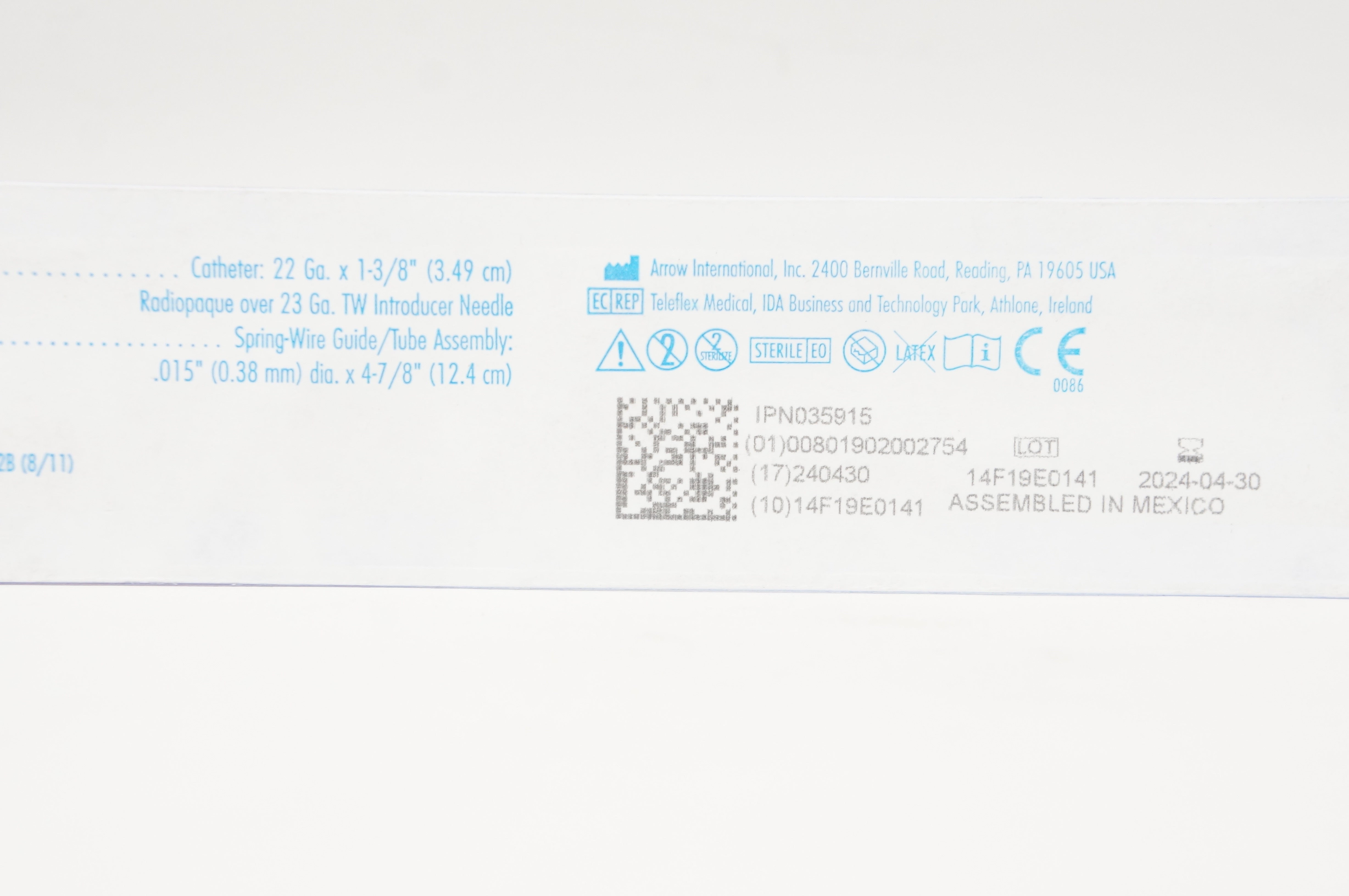 - Arrow RA-04122 Radial Artery Catheterization Set 22Ga x 1 3/8inch