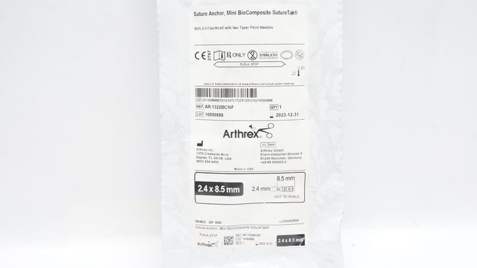 - Arthrex AR-1322BCNF Stre Anchor Mini BioComposite SutureTak 2.4 x 8.5mm (x)