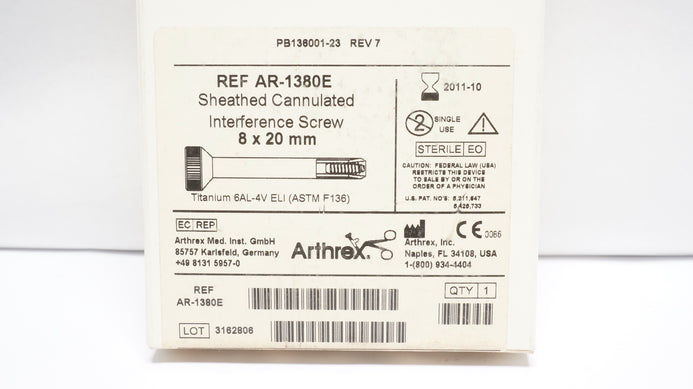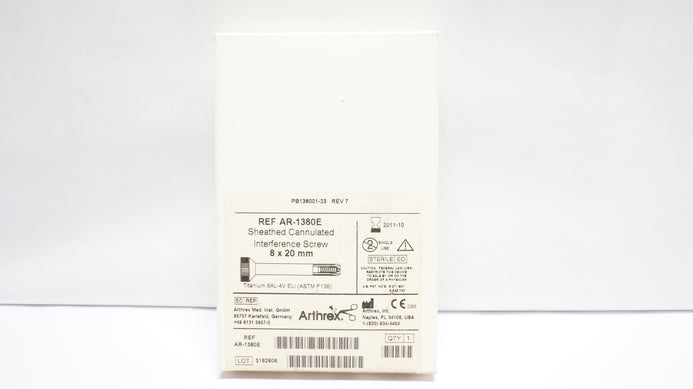 - Arthrex AR-1380E Screw, Cannulated Interference w/Disposable Sheath 8 x 20mm (x)