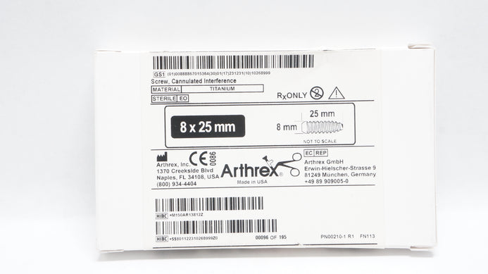 - Arthrex AR-1381E Screw Cannulated Interference w/Disposable Sheath 8 x 25mm (x)