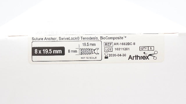 - Arthrex AR-1662BC-8 Suture Anchor, SwiveLock Tenodesis, 8 x 19.5mm (x) -Box of 5