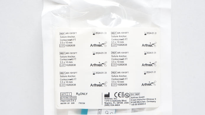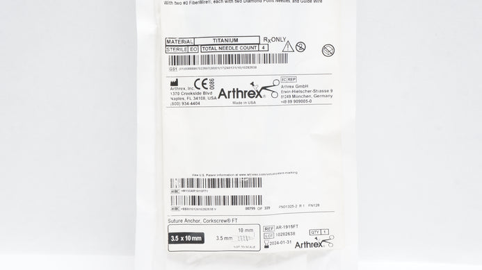 - Arthrex AR-1915FT Stre Anchor Corkscrew FT With Two #0 FiberWire 3.5 x 10mm(x)