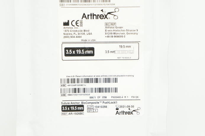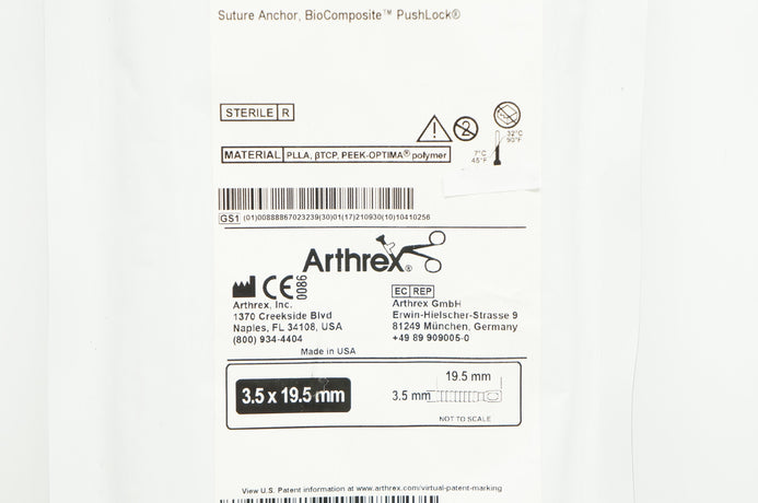 - Arthrex AR-1926BC Peek-Optima Stre Anchor BioComposite PushLock 3.5 x 19.5mm