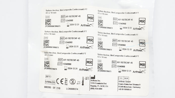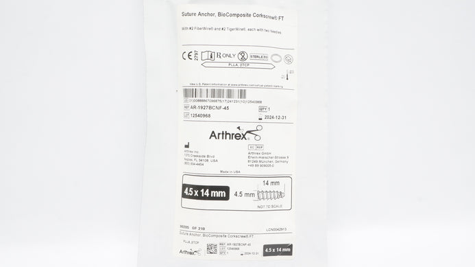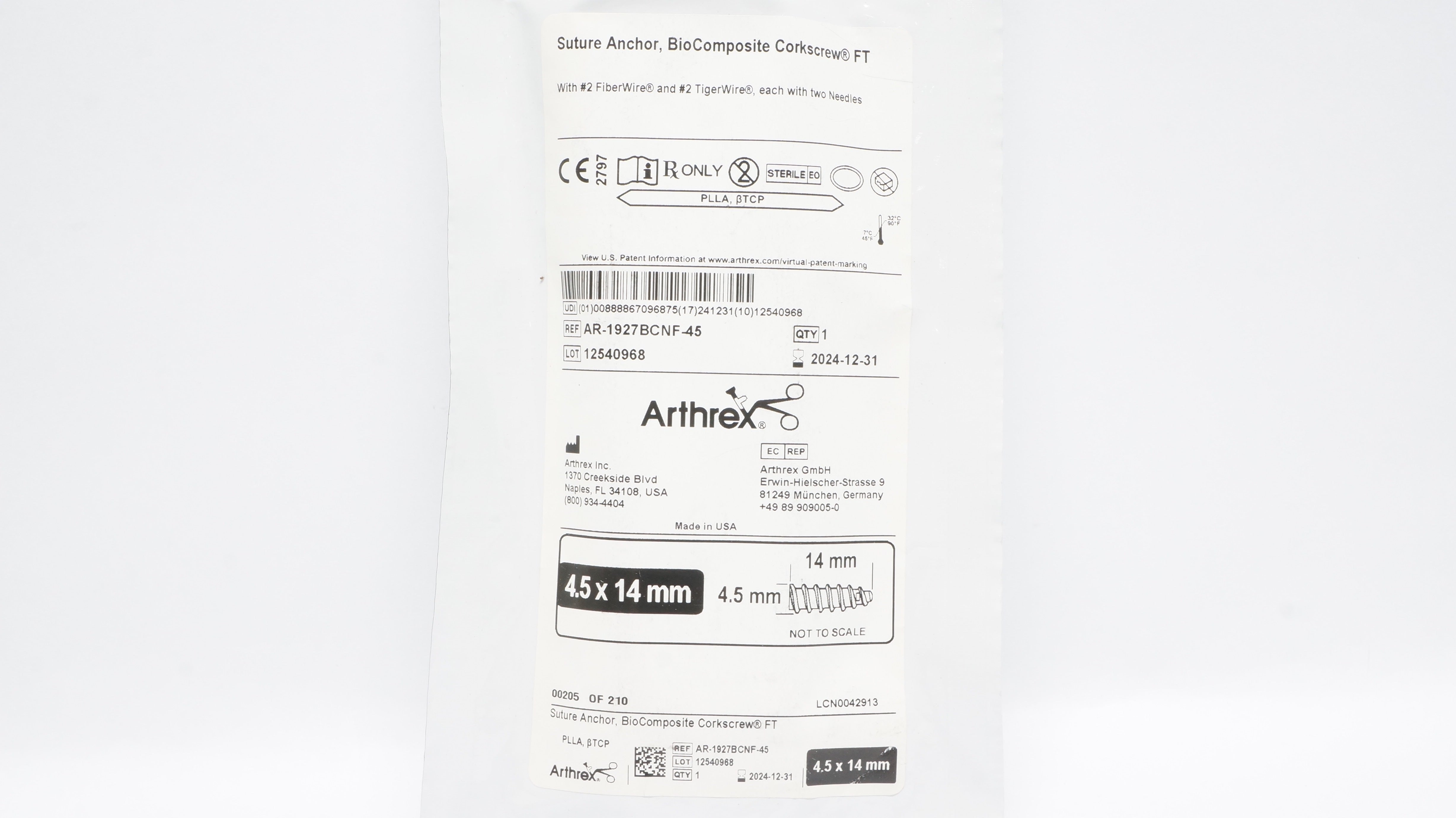 - Arthrex AR-1927BCNF-45 BioComposite Corkscrew FT Stre Anchor 4.5mm x 14mm (x)