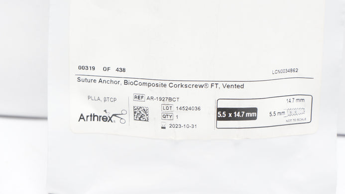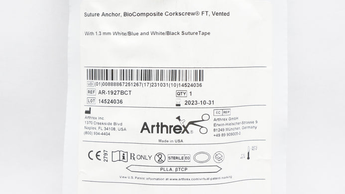 - Arthrex AR-1927BCT Stre Anchor Corkscrew FT Vented Stre Tape 5.5inch x 14,7mm(x)