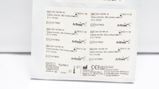 - Arthrex AR-1927BF-45 Bio-Corkscrew FT Suture Anchor 4.5mm (x)