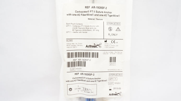 - Arthrex AR-1928SF-2 Corkscrew FT II Suture Anchor (x)
