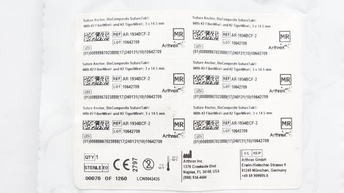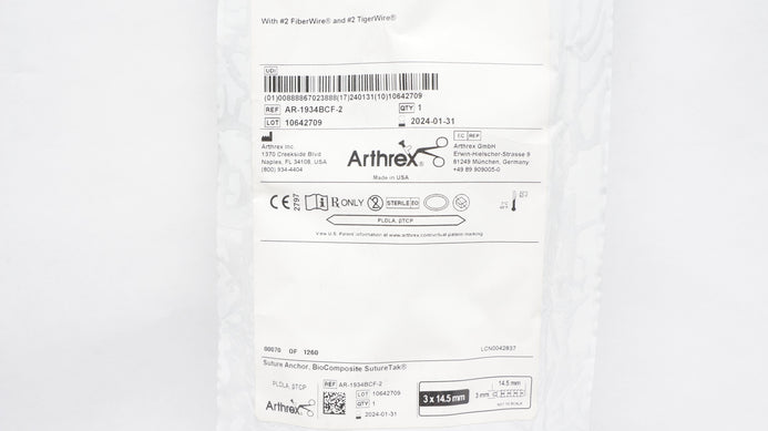 - Arthrex AR-1934BCF-24 Suture Anchor BioComposite Suture Tak 2.4 x 12 mm (x)