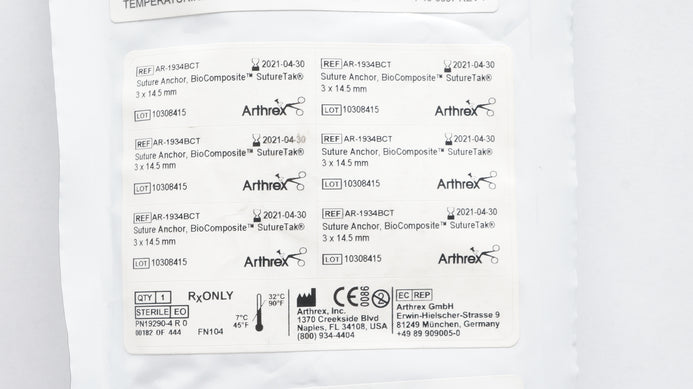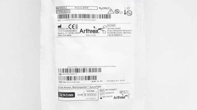 - Arthrex AR-1934BCT Stre Anchor BioComposite SutureTak 3mm x 14.5mm (x)