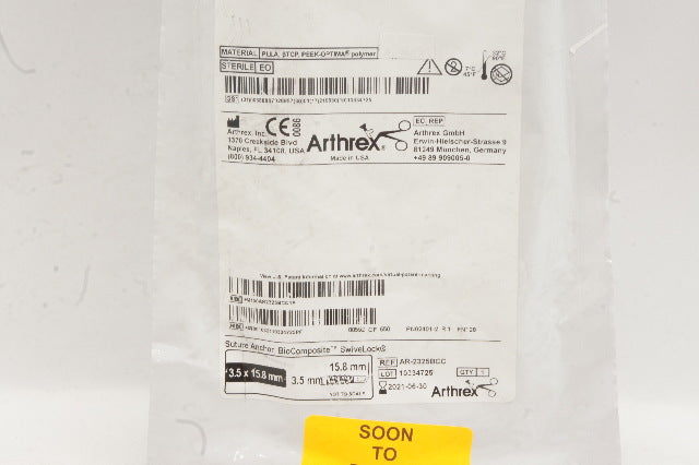 - Arthrex AR-2325BCC Peek-Optima Stre Anchor BioComposite SwiveLock 3.5x15.8mm(x)