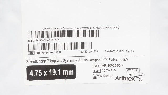 - Arthrex AR-2600SBS-4 SpeedBridge Implant System with BioComposite 4.75x19.1mm(x)