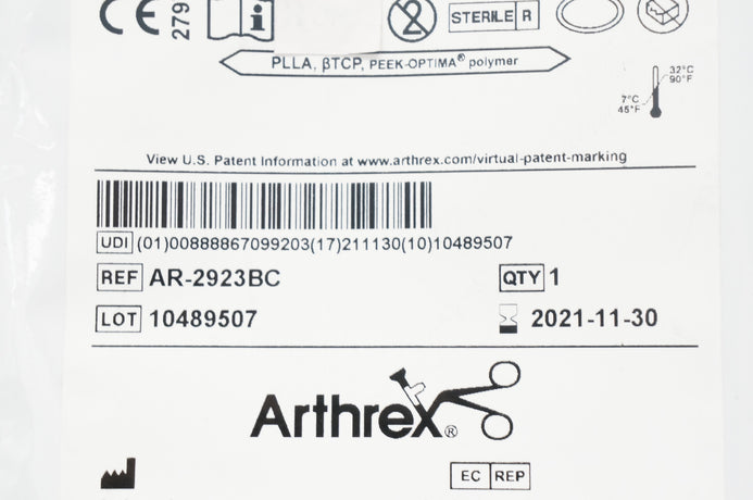 - Arthrex AR-2923BC Peek-Optima Stre Anchor BioComposite PushLock Short