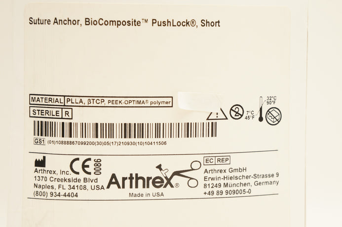 - Arthrex AR-2923BC Stre. Anchor BioComposite PushLock Short 2.9x12.5mm-Box of5(x)