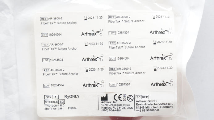 - Arthrex AR-3600-2 FiberTak Stre Anchor W/ #2 FIberWire CL Double Loaded (x)