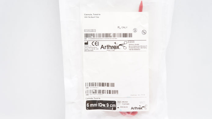 - Arthrex AR-6545 Twist-In Cannula with No-Squirt Cap 6mm I.D. x 9cm (x)