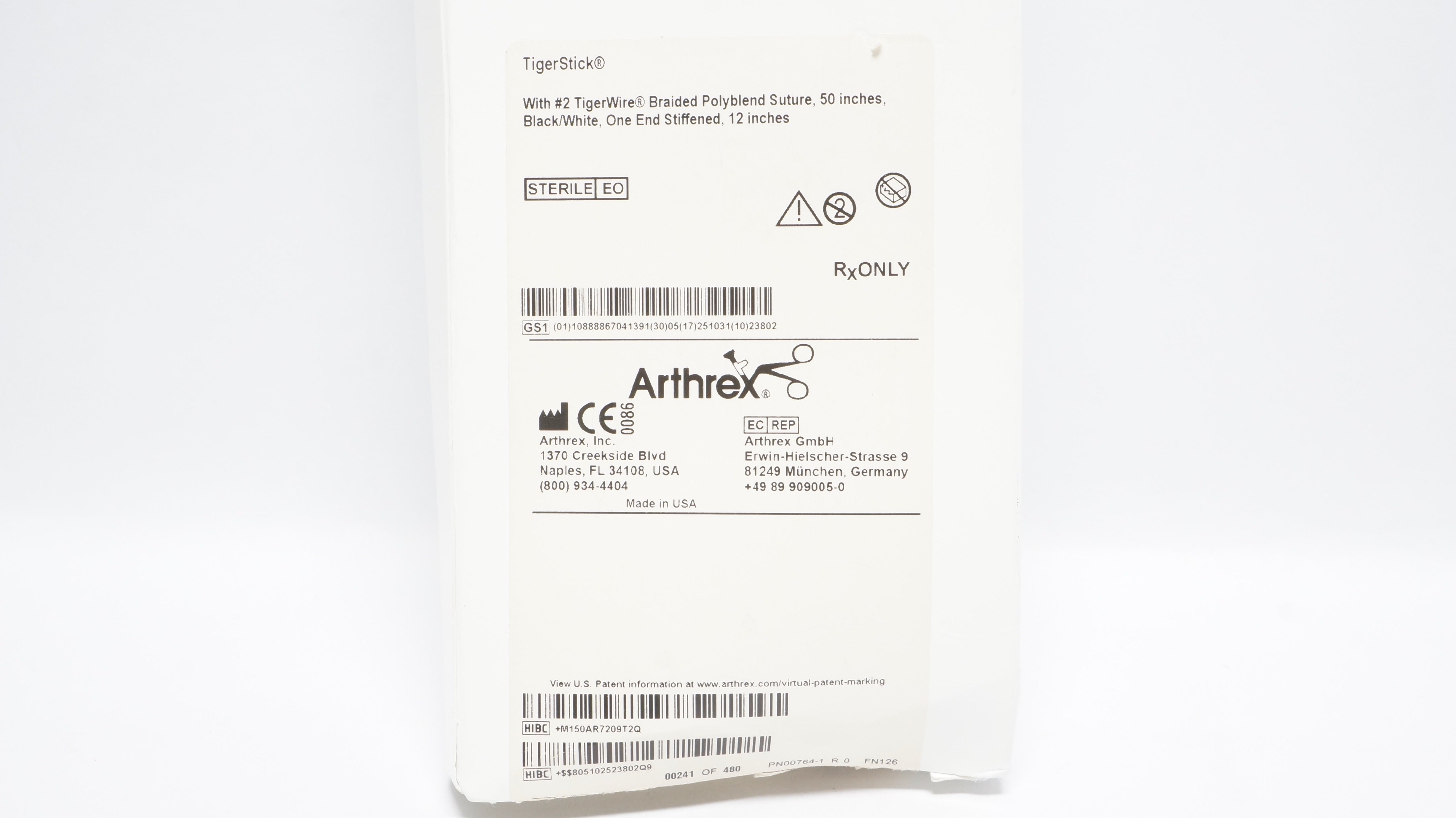 - Arthrex AR-7209T Tiger Stick, #2 Tiger Wire Braided, 50inch (x) - Box of 5