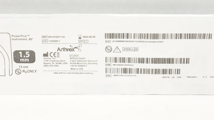 - Arthrex AR-8150PP-45 PowerPick Instrument, 45 Degree 1.5mm x 13cm (x)