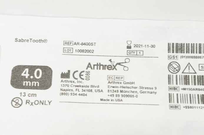 - Arthrex AR-8400ST Sabre Tooth 4.0mm