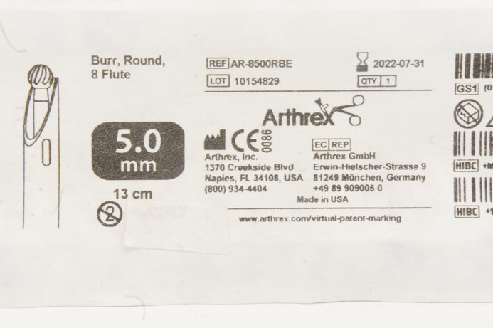 - Arthrex AR-8500RBE Burr Round 8 Flute 5.0mm