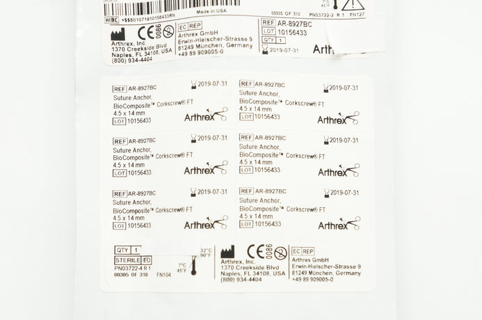 - Arthrex AR-8927BC Stre. Anchor, BioComposite Corkscrew FT 4.5 x 14mm (x)