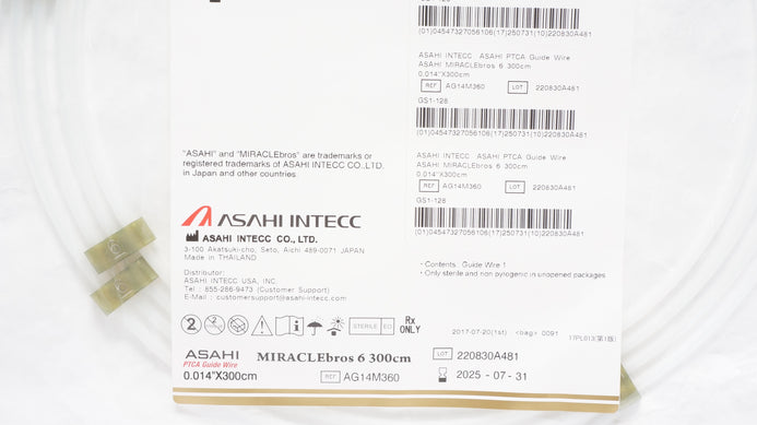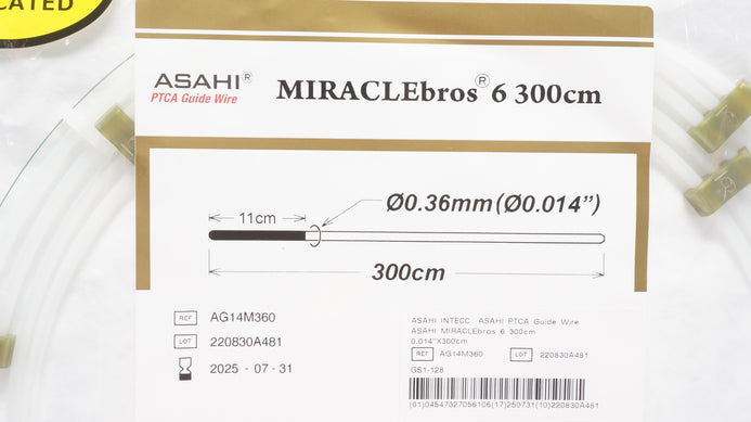 - ASAHI Intecc AG14M360 MIRACLEbros 6 PTCA Guide Wire, 0.014inch x 300cm (x)