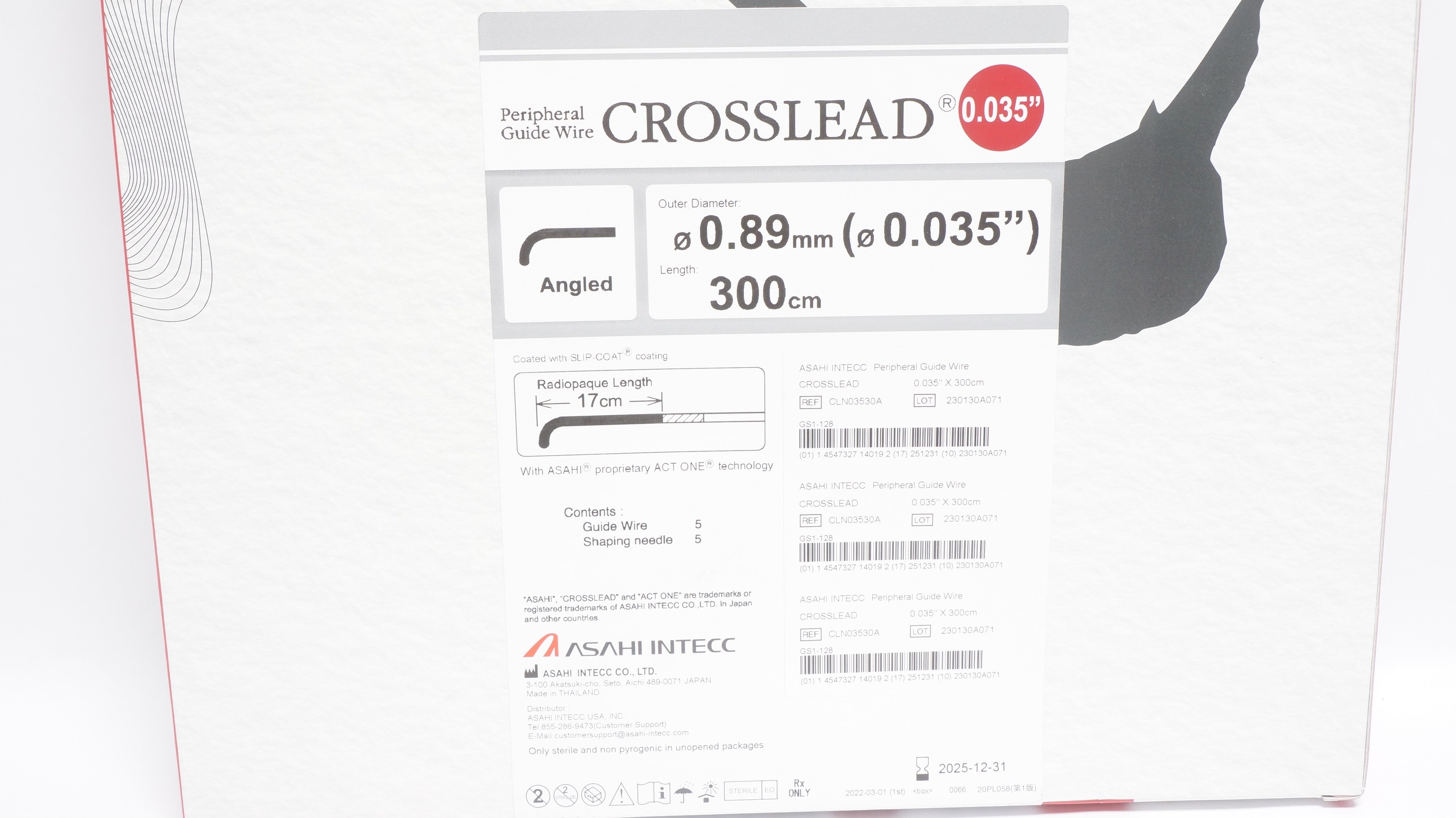 - Asahi Intecc CLN03530A Peripheral Guide Wire Crosslead Crosslead (x) - Box of 5