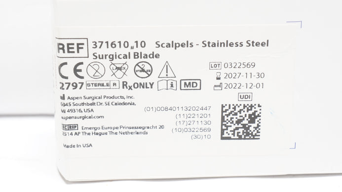 - Aspen 371610 Bard-Parker Surgical Stainless Steel Surgical Blade N10 - Box of 10