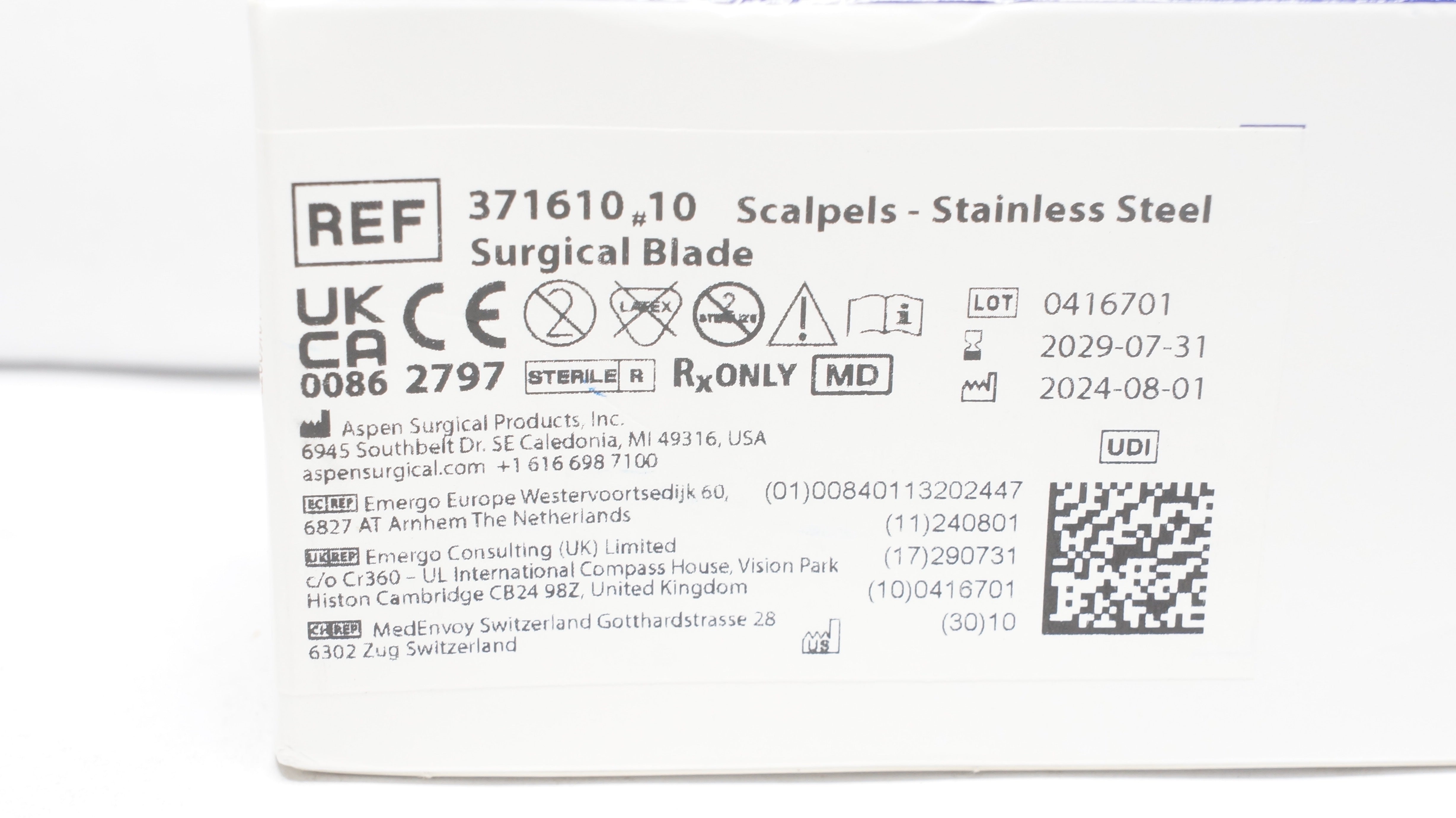 - Aspen 371610 Bard-Parker Surgical Stainless Steel Surgical Blade N10 - Box of 10
