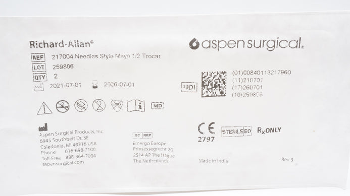 - Aspen Surgical 217004 Richard-Allan Mayo 1/2 Trocar Ndles - Pack of 2