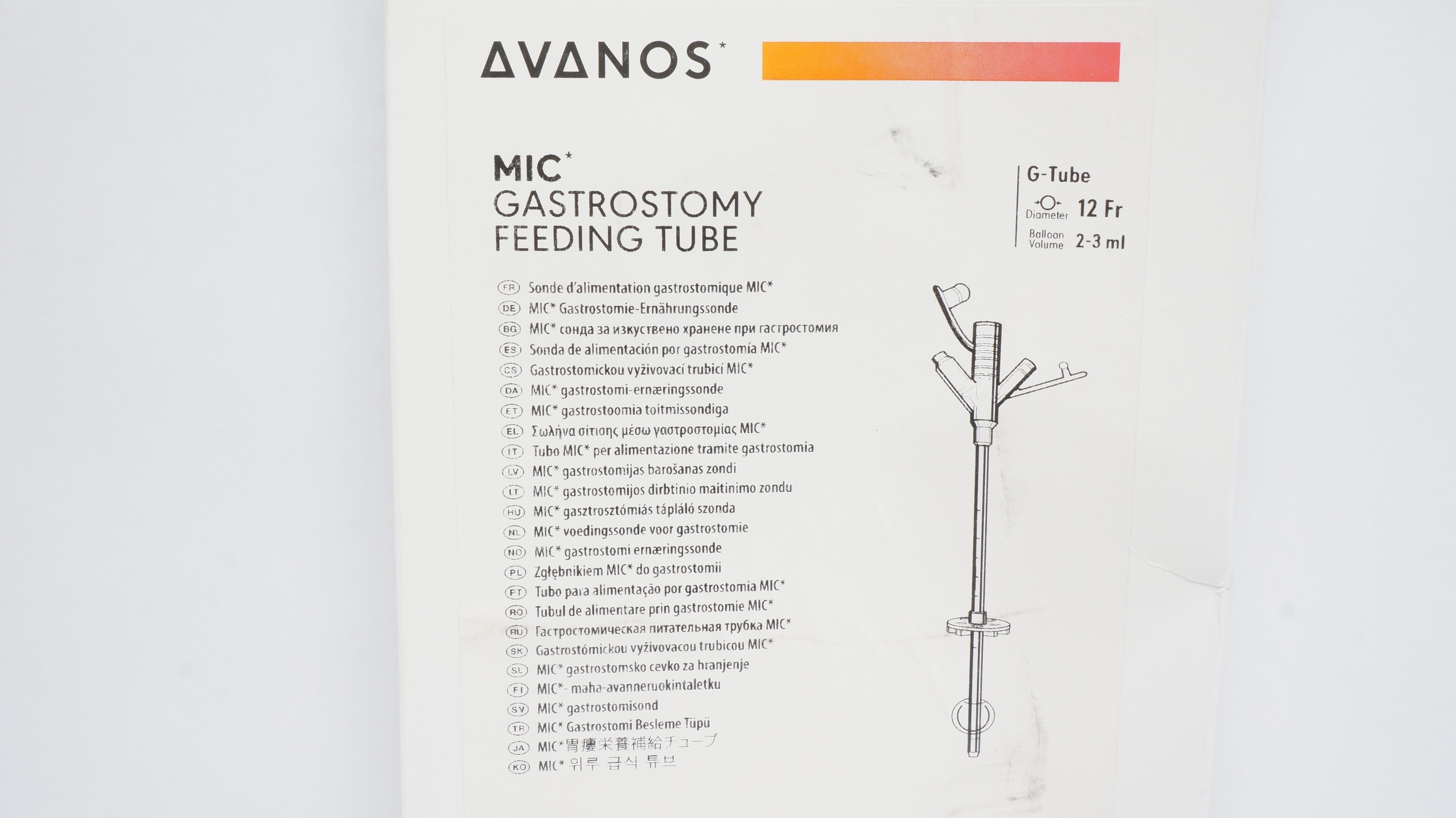 - Avanos 0100-12LV Mic Gastrostomy Feeding Tube 12Fr. 2-3ml (x)