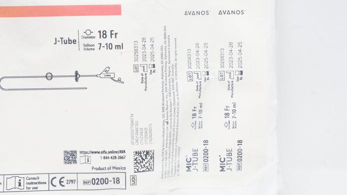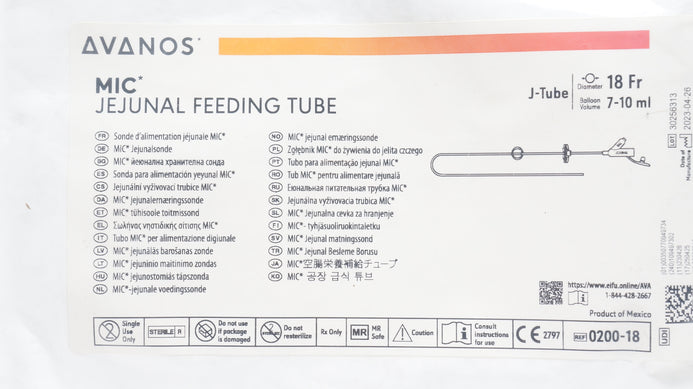 - Avanos 0200-18 MIC Jejunal Feeding Tube J-Tube 18Fr x 7-10 ml