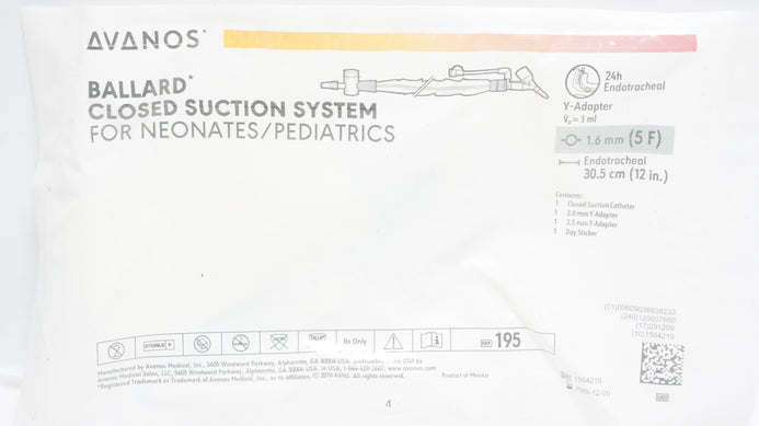 - Avanos 195 Ballard Closed Suction System for Neonates/Pediatrics 5F x 12In