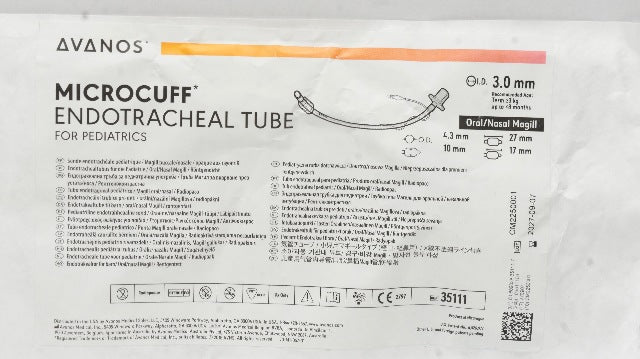 - Avanos 35111 Microcuff Pediatric Endotracheal Tube 3.0mm ID x 4.3mm OD x 10mm