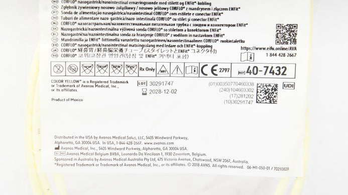 - Avanos 40-7432 Corflo Nasogastric/Nasointestinal Feeding Tube 12Fr x 109cm