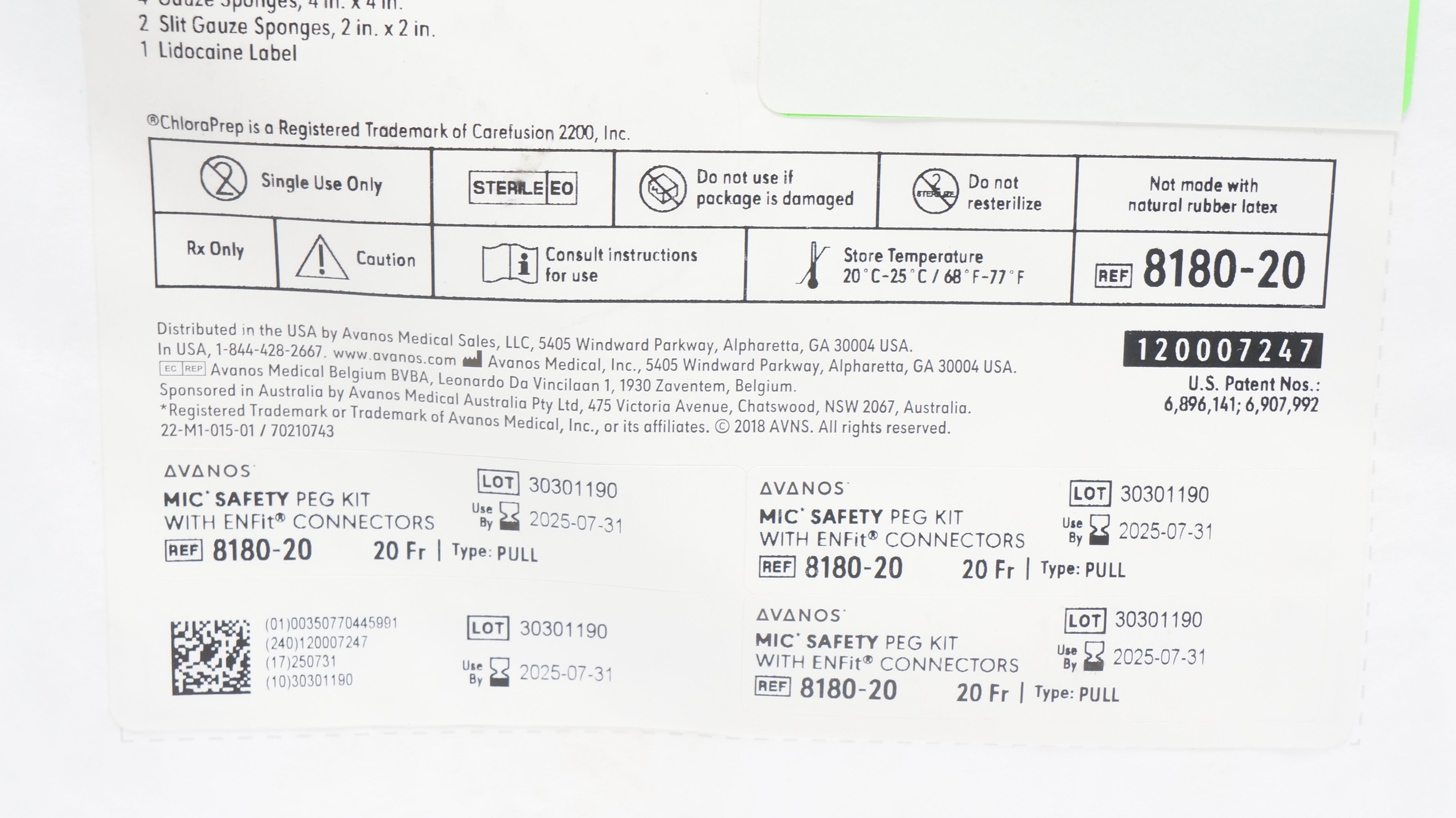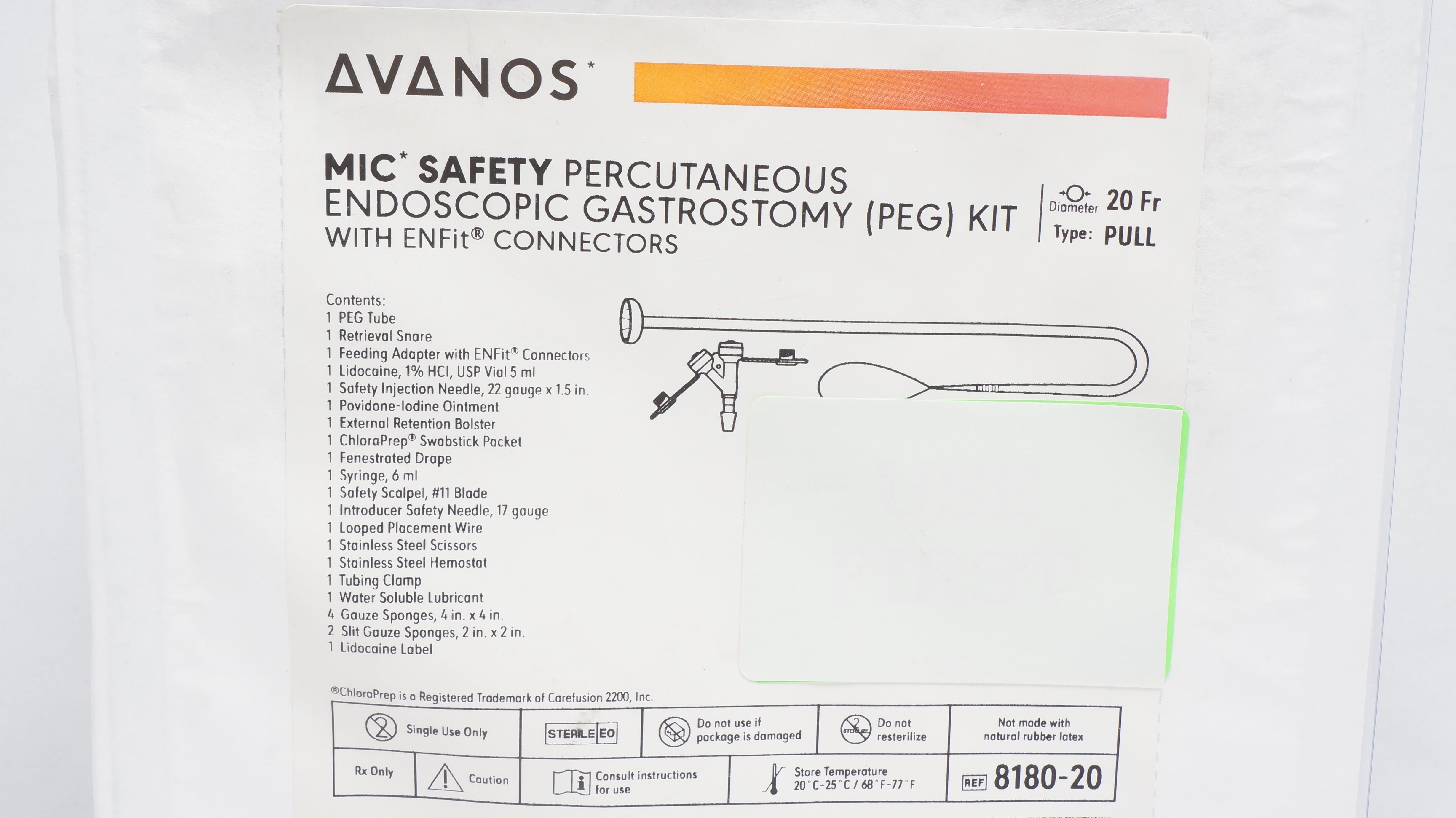 - Avanos 8180-20 MIC Safety Percutaneous Endoscopic Gastrostomy Kit 20Fr (x)
