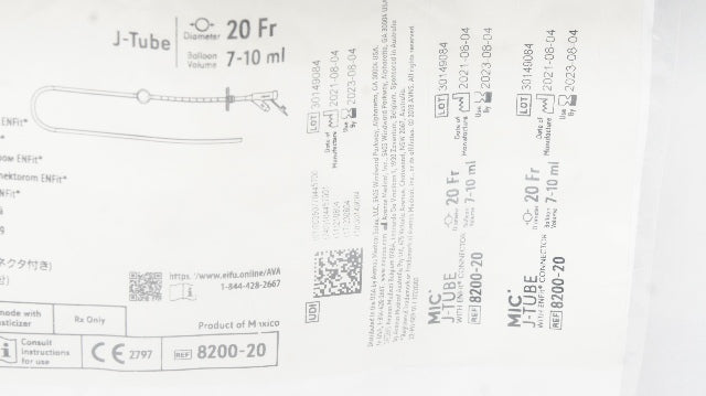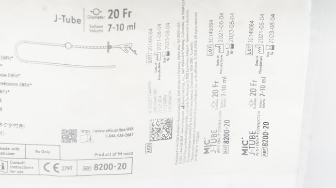 - Avanos 8200-20 MIC Jejunal Feeding Tube w/ENFit Connector 20Fr 7-10ml (x)