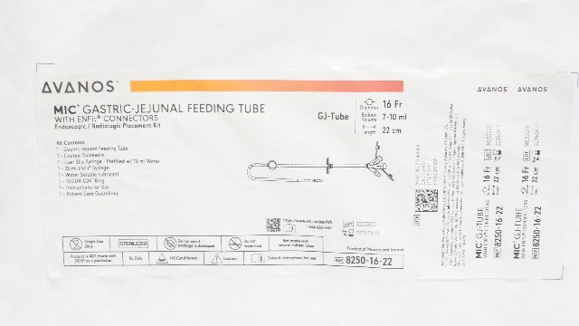 - Avanos 8250-16-22 MIC Gastric-Jejunal Feeding Tube 16Fr x 22cm 7-10ml (x)