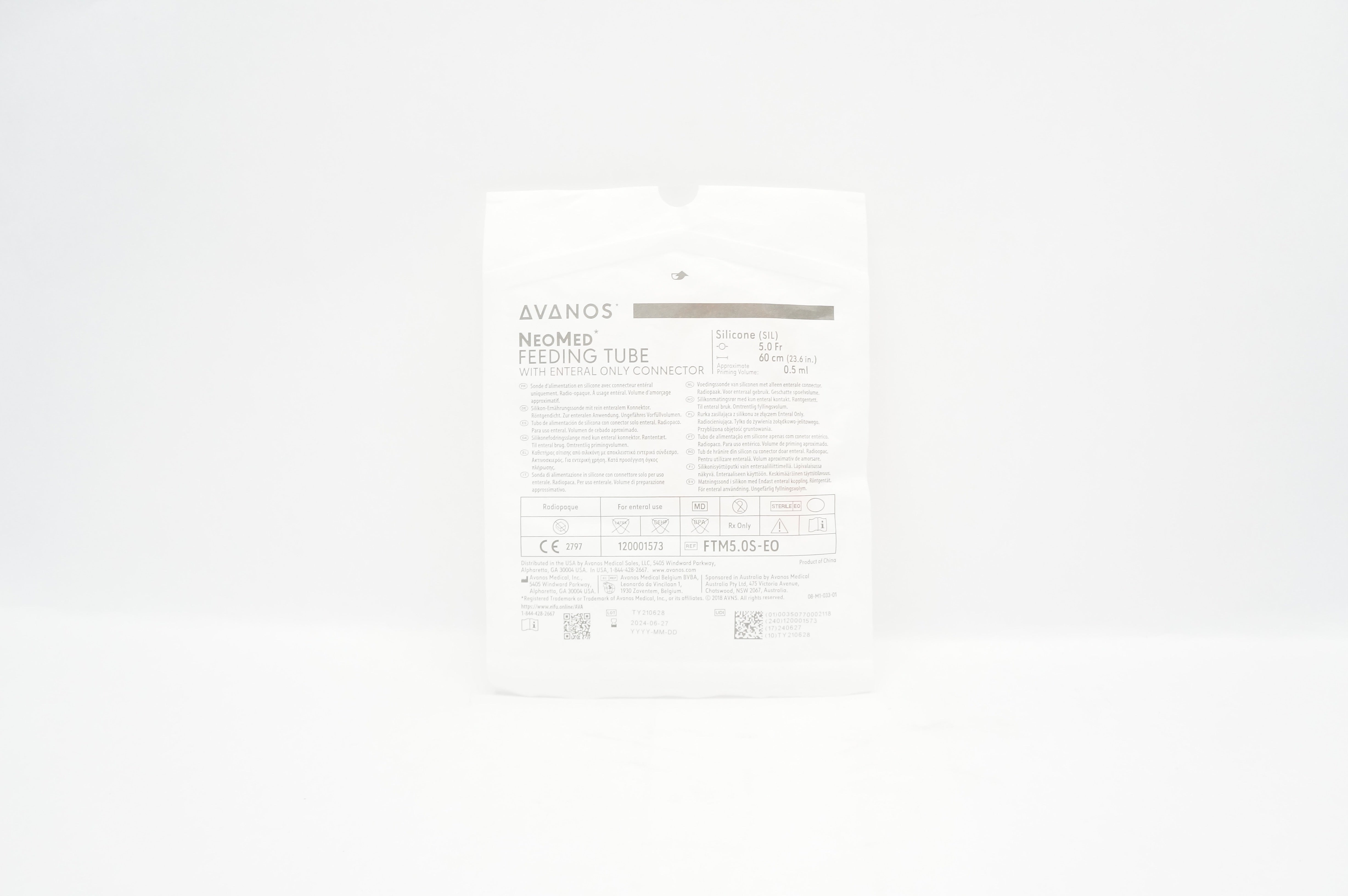 - Avanos FTM5.OS-EO NeoMed Silicone Feeding Tube with Connector 5.0Fr x 23.6inch