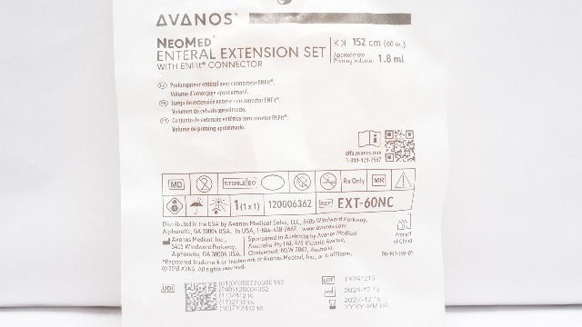 - Avanos PEXT-60NC NeoMed Enteral Extension Set w/ENFIT Connector 60inch x 1.8mL