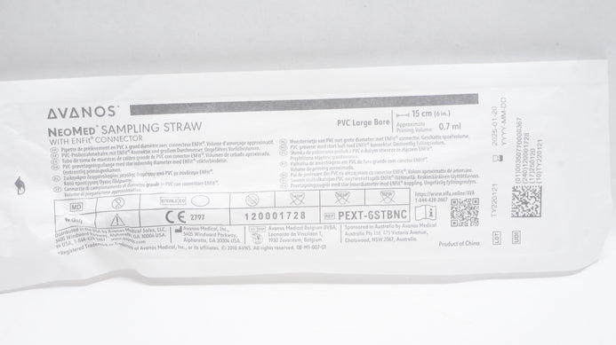 - Avanos PEXT-6STBNC NeoMed Sampling Straw PVC Large Bore 0.7mL x 6inch
