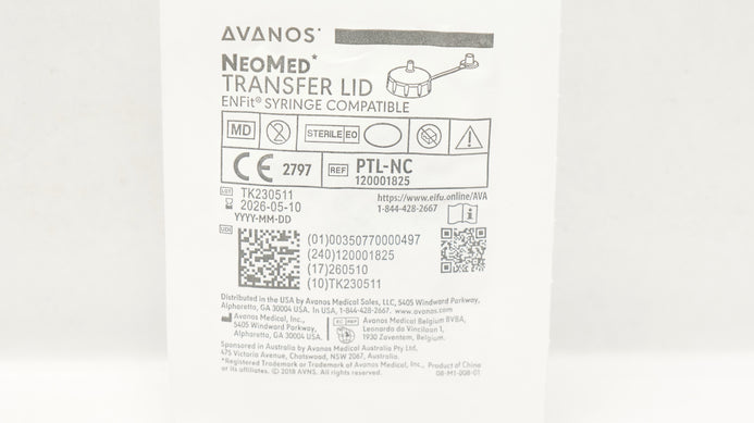 - Avanos PTL-NC NeoMed Transfer Lid EnFit Syringe Compatible