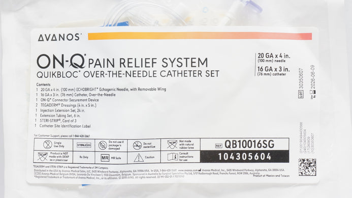 - Avanos QB10016SGC On-Q Quikbloc Ndle Cath. Set 16Ga x 3inch Ndle 20GA x 4inch
