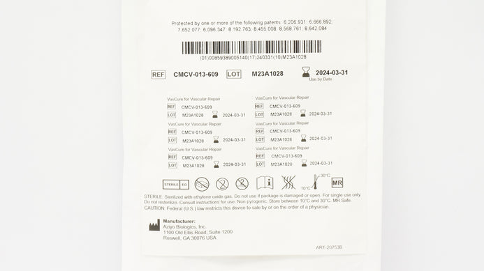 - Aziyo Biologics CMCV-013-609 VasCure for Vascular Repair 1x10cm (x)