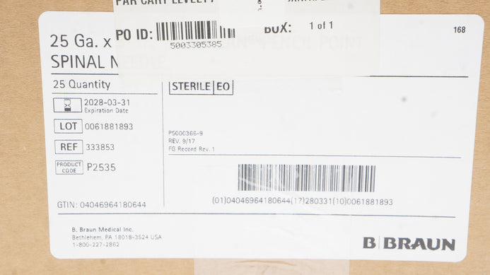 - B.Braun 333853 Pencan Pencil Point Spinal Ndle 25Ga x 3-1/2inch - Box of 25